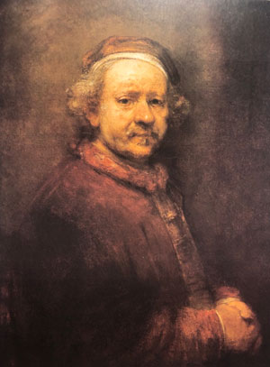 렘브란트의 작품 중에 <토비아스와 새끼 염소를 안고 있는 안나>는 가장 초기의 작품으로 선명하게 빛이 나며 극히 사실적으로 그려졌습니다. 농민 생활의 소박한 세부 묘사로 가득 차 있는 이 작품은 구약성서의 정경을 새로운 방식으로 표현한 것입니다. 어떠한 화가의 작품에서도 볼 수 없는 인간적인 감정이 가득 찬 그림입니다. <눈이 멀게 된 삼손>은 극적인 빛의 표현으로 바로크 양식의 절정을 나타내고 있습니다. 구약성서의 세계를 잔혹하면서도 매혹적인 동양풍으로 묘사하고 있습니다. 이 시기에 동양 의상이나 물건들을 열심히 수집했던 렘브란트는 그것을 작품의 소재로 사용하였습니다. 어두운 천막 속에서 갑자기 눈부시게 빛나는 홍수가 밀려오듯 드라마틱한 장면을 연출하고 있습니다. <요셉의 아들을 축복하는 야곱>에서 렘브란트는 주로 인간의 내적인 심리상태인 사고나 감정의 드라마에 관심을 갖고 심오하게 표현하였습니다. 장막 뒤에서 비추어지는 황금빛은 인물의 움직임과 시선과 마찬가지로 따뜻하고 부드러운 느낌을 전달합니다. 침대 아래에서 이 그림을 바라보면 마치 우리가 이 정경 속의 일부가 된 듯한 느낌을 받게 될 것입니다. <툴프 박사의 해부학 강의>는 네덜란드의 마우리츠하위스 미술관에 전시되어 있는데, 이 그림은 외과 의사 조합의 요청으로 제작된 것입니다. 당시 이 그림으로 초상화가로서 명성을 얻었습니다. <야경>은 바닝 코크 대장과 부대원들을 그린 집단 초상화로, 처음에는 '부관 빌렘 반 로이텐뷔르흐에게 출동을 명하는 청년 대장 바닝 코크'라는 제목이었습니다. 틀에 박힌 초상화 형식을 벗어나 빛과 그림자를 강하게 대비시킨 작품입니다. 초기에 이 그림의 배경이 밝은 낮이었지만 그림을 보호하기 위해 덧칠한 니스 때문에 그림의 배경이 밤처럼 어둡게 보이게 되었습니다. 결과적으로 그림의 배경이 어두워져 야경꾼들이 밤에 돌아다니는 것처럼 보였기 때문에 <야경>이라는 제목으로 알려지게 되었습니다. 최근 연구를 통해 그림의 배경이 밤이 아닌 대낮임이 밝혀졌습니다. <야경>은 인간의 내면세계와 영혼의 빛과 그림자를 탐구하기 시작하면서 그린 작품으로 그 당시 대중들의 관심으로부터 멀어졌던 계기가 되어서 렘브란트의 명성에 고비가 된 작품이기도 합니다. <폴란드 기병>은 북유럽 르네상스 미술에서 구도와 착상을 빌려와 독자적인 개인 양식으로 끌어올린 작품입니다. 이 폴란드 기병은 위험을 감수하며 전진하는 용감한 그리스도교의 병사입니다. 렘브란트는 이 병사의 위험성과 행선지를 명확히 밝히지 않고 우리의 상상력에 맡기고 있습니다. 음울한 색채와 을씨년스러운 경치를 통해 편안하지 않은 여정임을 암시하고 있습니다. 이 작품은 정밀하고 묘한 색채와 구도가 돋보이며, 빛과 분위기는 물론 말의 움직임까지도 변화무쌍한 듯이 보입니다. 그리고 렘브란트는 약 40년 동안 약 100 여 점의 자화상을 그렸습니다. 그는 자신의 이미지를 시간의 흐름에 따라 예술적으로 탐구했는데, 젊은 시절부터 나이 들어가는 모습에 이르기까지 자화상을 그렸습니다. 젊은 시절에는 모피와 금으로 둘러싼 부유하고 성공한 모습을 그렸고, 나이가 들어서는 명암의 대조보다는 내면세계를 더 중요시하여 표현했습니다.